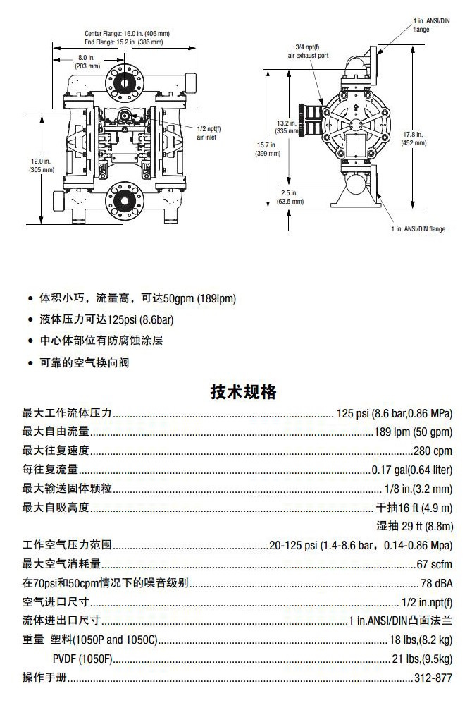? 體積小巧,流量高,可達50gpm(189lpm)